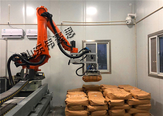 2、 占地面積少。有利于客戶廠房中生產線的布置,并可留出較大的庫房面積。涂料劑碼垛機器人可以設置在狹窄的空間,即可有效的使用。