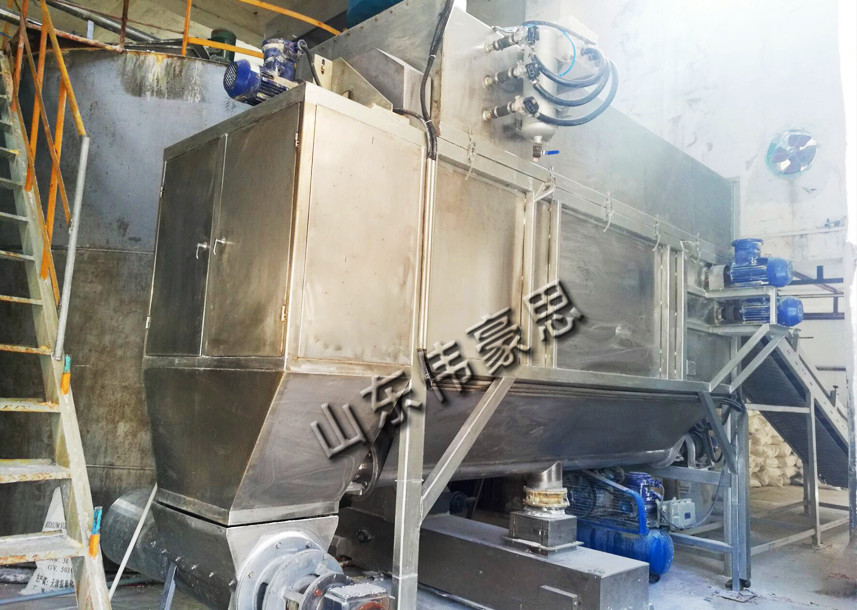 袋裝石英粉自動破包機是將成品的袋裝物料到場后,經由皮帶輸送機傳至45°角(jiao)處依靠重力自(zi)然垂(chui)落(luo),在這個下滑過程(cheng)中(zhong)設備的割刀裝置上有刀片,把袋子(zi)割開,物(wu)料下落(luo)經由滾(gun)筒篩進(jin)行篩分,從滾(gun)筒篩落(luo)下的物(wu)料由螺旋輸(shu)送機輸(shu)出,破損的包裝袋、雜質、結塊物(wu)料被滾(gun)筒篩帶出機體(ti)。破包的過程(cheng)中(zhong)引起的粉塵(chen)(chen)由布袋式除塵(chen)(chen)器捕捉并(bing)抖落(luo),袋子(zi)進(jin)入收集器自(zi)動排出機體(ti)外。