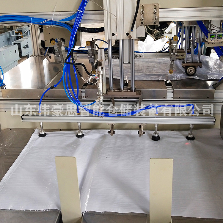 當(dang)(dang)料倉備(bei)料后,自(zi)動(dong)(dong)上(shang)(shang)(shang)袋(dai)機也開始自(zi)動(dong)(dong)上(shang)(shang)(shang)袋(dai),當(dang)(dang)袋(dai)口被套在全自(zi)動(dong)(dong)包(bao)裝機夾袋(dai)器上(shang)(shang)(shang)時,全自(zi)動(dong)(dong)包(bao)裝機料斗開始放料,動(dong)(dong)作完(wan)成(cheng)后,上(shang)(shang)(shang)袋(dai)機抱(bao)袋(dai)裝置(抱(bao)袋小(xiao)車)抱(bao)住(zhu)裝(zhuang)(zhuang)好(hao)的包(bao)裝(zhuang)(zhuang)袋,通過(guo)皮(pi)帶輸送(song)將包(bao)裝(zhuang)(zhuang)袋送(song)至折邊(bian)機處折邊(bian),后到縫包(bao)機處,并開(kai)始縫包(bao)工作,當動作完成后,包(bao)裝(zhuang)(zhuang)袋隨皮(pi)帶輸送(song)機輸出完成這(zhe)個包(bao)裝(zhuang)(zhuang)過(guo)程。