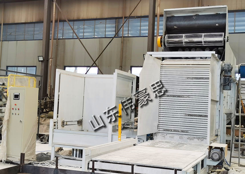 袋(dai)(dai)(dai)裝(zhuang)物(wu)料(liao)整垛用(yong)叉車運到鏈板(ban)輸送機上,鏈板(ban)輸送機把垛料(liao)輸送到垛料(liao)翻(fan)(fan)轉(zhuan)機構(gou)上,垛料(liao)翻(fan)(fan)轉(zhuan)機構(gou)把垛料(liao)進(jin)行翻(fan)(fan)轉(zhuan)梳理后輸送到割刀上部的(de)滑(hua)(hua)(hua)板(ban)部分,料(liao)袋(dai)(dai)(dai)依靠重力(li)沿滑(hua)(hua)(hua)板(ban)下(xia)滑(hua)(hua)(hua),在下(xia)滑(hua)(hua)(hua)過(guo)程中(zhong)由快速轉(zhuan)動的(de)刀片將包(bao)裝(zhuang)袋(dai)(dai)(dai)割開,被(bei)割開的(de)殘袋(dai)(dai)(dai)和物(wu)料(liao)滑(hua)(hua)(hua)入滾筒(tong)(tong)篩(shai)進(jin)行篩(shai)分。從滾筒(tong)(tong)篩(shai)落下(xia)的(de)物(wu)料(liao)由螺旋(xuan)輸送機輸出(chu),破(po)損的(de)包(bao)裝(zhuang)袋(dai)(dai)(dai)被(bei)滾筒(tong)(tong)篩(shai)帶出(chu)機體。割刀破(po)袋(dai)(dai)(dai)過(guo)程中(zhong)引起(qi)的(de)粉塵由布袋(dai)(dai)(dai)式除塵器捕捉(zhuo)并(bing)抖落入螺旋(xuan)輸送機,拆(chai)袋(dai)(dai)(dai)完成后的(de)垛盤由垛盤收集器進(jin)行收集碼垛,廢袋(dai)(dai)(dai)由廢袋(dai)(dai)(dai)打(da)包(bao)機器人打(da)包(bao)處理