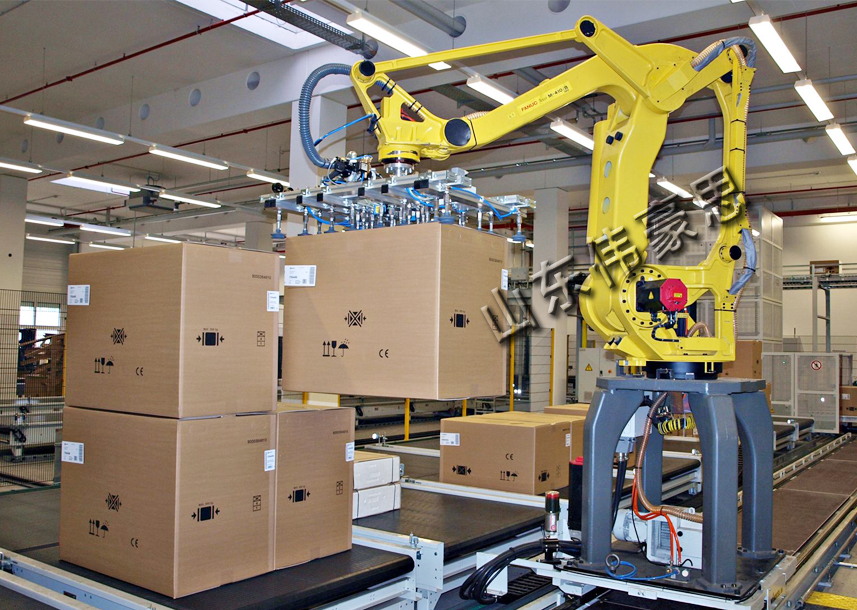 箱裝餐具碼垛機器人可以在環境復雜的條件下進行工作,用人工的話因為環境的原因不僅會降低工作的效率,還會提高勞動成本,機械手碼垛機就不會存在這樣的問題,它可以應用于袋、盒、板條箱、瓶等包裝形式的物料的自動化碼垛,如食品、飲料、日化、香煙、酒類、肥料,飼料、糧食等行業紙箱包裝、袋包裝和周轉筐包裝的產品自動化碼垛