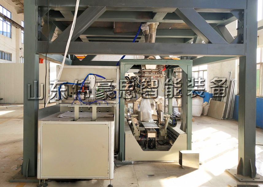 顆粒料給袋式包裝機能代替手工包裝,為大型企業、中小規模企業實現了包裝自動化,操作人員只要將做好的一個一個的袋子,一次性將幾百個袋子放在設備的取袋部,設備機械爪會自動的取袋、列印日期、開袋、給計量裝置信號計量并落料、封口、輸出。