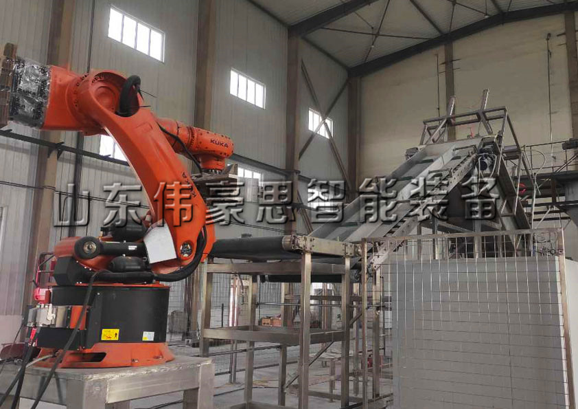 硅粉自動(dong)拆(chai)(chai)垛拆(chai)(chai)包(bao)設備實現直接(jie)上(shang)料(liao)(liao)拆(chai)(chai)包(bao)自動(dong)化,兩(liang)者的(de)(de)結合(he)除(chu)叉車上(shang)垛外,無需(xu)人(ren)(ren)工(gong)操作,它是由機器人(ren)(ren)抓手將要拆(chai)(chai)卸的(de)(de)物料(liao)(liao)袋(dai)抓取提升至割袋(dai)裝(zhuang)置(zhi)上(shang)方,由割袋(dai)裝(zhuang)置(zhi)拆(chai)(chai)包(bao),物料(liao)(liao)落入儲料(liao)(liao)罐(guan)內,機器人(ren)(ren)抓手通過抖動(dong)清空(kong)料(liao)(liao)袋(dai)。
