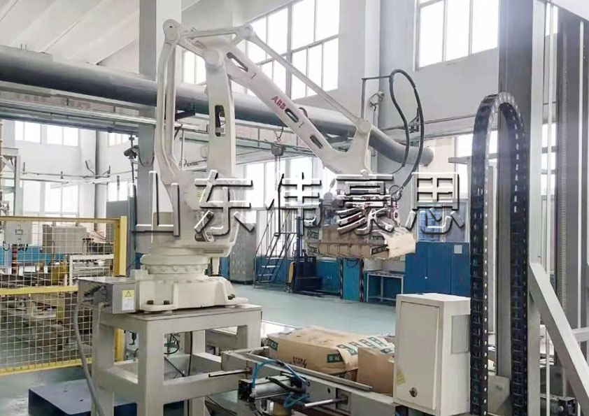 山東偉豪思白炭黑碼垛機器人使搬運和碼垛的工作效率大為提高,其簡單的操作方式、方便的后期維護保養,同樣也提高了企業的辦事效率,降低了企業的生產成本以及人工成本投入