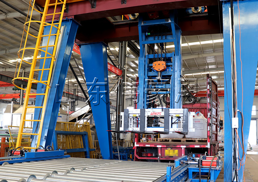 (4)龍門(men)式自動(dong)(dong)裝(zhuang)(zhuang)(zhuang)車(che)(che)(che)機插取噸包垛從運(yun)輸(shu)車(che)(che)(che)輛車(che)(che)(che)廂尾部上方進入,向車(che)(che)(che)頭方向移(yi)動(dong)(dong),到達指定(ding)裝(zhuang)(zhuang)(zhuang)車(che)(che)(che)位置(zhi)時,裝(zhuang)(zhuang)(zhuang)車(che)(che)(che)機停止移(yi)動(dong)(dong),將兩組(zu)噸包垛碼放到車廂(xiang)定裝車位置,自動裝車機的(de)裝車叉(cha)具(ju)有護包、整形能力(li);