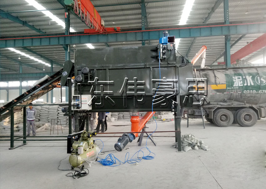 料(liao)袋(dai)可以通過(guo)人(ren)工、機器手臂或傳(chuan)送帶(dai)送入破包機的(de)入口,在這個入口處(chu)蓋有一個收塵罩(zhao)。料(liao)袋(dai)從傳(chuan)送帶(dai)上滑下,進入割袋(dai)裝(zhuang)置,將料(liao)(liao)(liao)帶(dai)切割成條狀,破損的(de)(de)(de)(de)料(liao)(liao)(liao)袋(dai)(dai)和里(li)面(mian)裝有的(de)(de)(de)(de)物料(liao)(liao)(liao)一(yi)起(qi)通過溜槽滑入篩分裝置中(zhong)。通過圓(yuan)(yuan)筒(tong)篩的(de)(de)(de)(de)旋轉,料(liao)(liao)(liao)袋(dai)(dai)漏到底部被完(wan)全清(qing)空。圓(yuan)(yuan)筒(tong)篩腔(qiang)內的(de)(de)(de)(de)槳板反復地提起(qi)已清(qing)空的(de)(de)(de)(de)料(liao)(liao)(liao)袋(dai)(dai),這樣(yang),料(liao)(liao)(liao)袋(dai)(dai)就完(wan)全與物料(liao)(liao)(liao)分離(li)了。傾(qing)斜的(de)(de)(de)(de)槳葉(xie)幫(bang)助料(liao)(liao)(liao)袋(dai)(dai)移至圓(yuan)(yuan)筒(tong)篩的(de)(de)(de)(de)出口,接著它(ta)們滑入已裝配的(de)(de)(de)(de)廢袋(dai)(dai)收集機內。