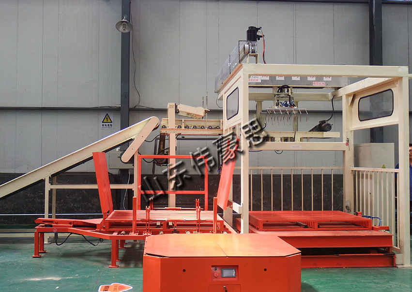 3.配套出庫輸送機,碼好產品直接送出,下個托盤繼續工作,無需叉車等待,提高工作效率。