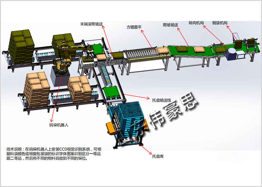 全自動包裝碼垛生產線主要由(you)全自(zi)動包裝機和自(zi)動碼垛機組成。
