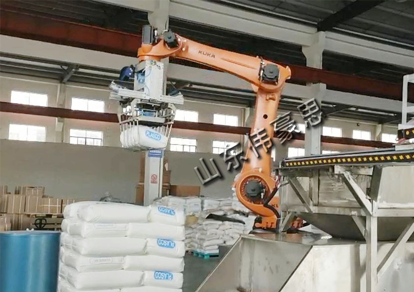 山東偉豪(hao)思智(zhi)能倉儲裝備有(you)限公司飼料全自動拆垛機是用于(yu)替代人(ren)工從事拆(chai)垛(duo)、上料的(de)(de)作業,是一種將不同包(bao)裝形式袋裝物料,由存(cun)儲地點(dian)的(de)(de)堆(dui)垛(duo)上拆(chai)卸下來,進(jin)行直接上料加工的(de)(de)智能自動(dong)化拆(chai)垛(duo)設備,應用于(yu)糧(liang)油、食品(pin)、酒(jiu)水、飲料、飼料、水泥、建(jian)材等行業,可(ke)以(yi)說(shuo)是現代機(ji)械(xie)制造(zao)生產體(ti)系中(zhong)一項重要的(de)(de)組成(cheng)部分。