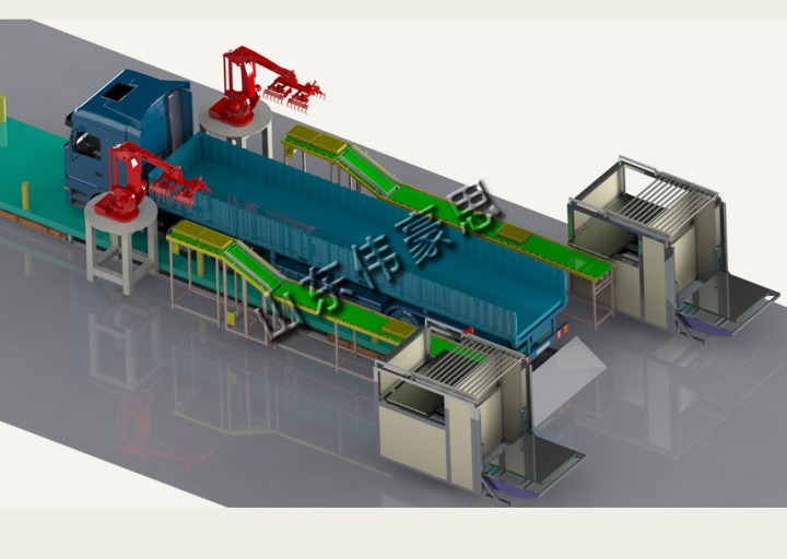 氧化鎂全自動裝車機是采用拆垛機器人供料,桁架裝車機進行裝車碼垛的自動化設備,它根據讀卡信息和視覺系統掃描的車廂尺寸自動生成裝車程序。