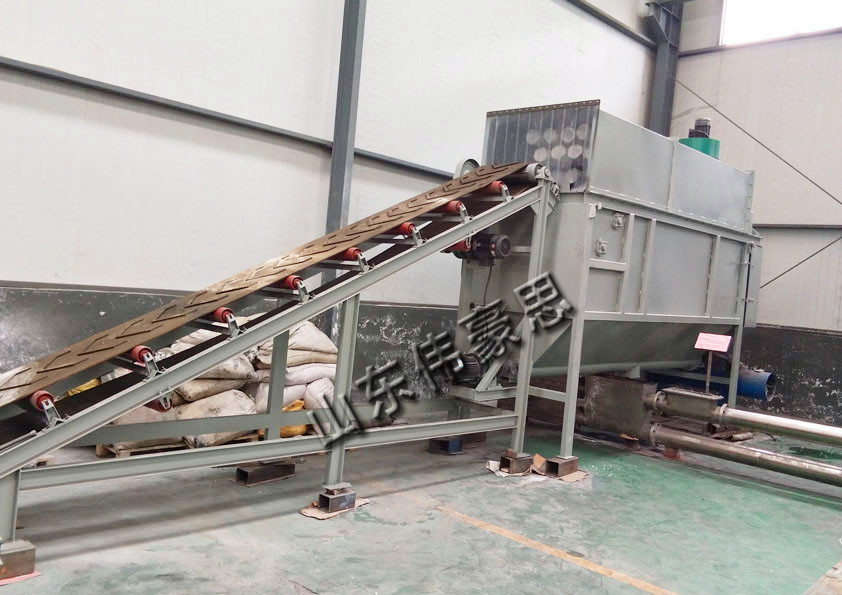 塑料粒子自動破袋機也稱之為自(zi)(zi)(zi)動破袋(dai)(dai)卸(xie)料(liao)(liao)(liao)機,用于炭黑(hei)卸(xie)料(liao)(liao)(liao)作業。它通過皮帶(dai)機自(zi)(zi)(zi)動給袋(dai)(dai),割(ge)刀(dao)裝置自(zi)(zi)(zi)動破袋(dai)(dai),振(zhen)篩(shai)自(zi)(zi)(zi)動袋(dai)(dai)料(liao)(liao)(liao)分離、卸(xie)料(liao)(liao)(liao)等(deng)(deng)步驟(zou)物料(liao)(liao)(liao)靠(kao)重力(li)落進貯斗中(zhong)來完成拆(chai)袋(dai)(dai)卸(xie)料(liao)(liao)(liao)工(gong)作。作業中(zhong)產(chan)(chan)生的粉(fen)(fen)塵被攜帶(dai)的除塵裝置濾除,使工(gong)人能在清潔的環境中(zhong)工(gong)作。主要應用于石(shi)(shi)(shi)油、化工(gong)、醫(yi)藥(yao)、食品、化纖、電力(li)、建材、環保、冶金等(deng)(deng)生產(chan)(chan)領域(yu)中(zhong)的干燥粉(fen)(fen)狀物料(liao)(liao)(liao)自(zi)(zi)(zi)動拆(chai)袋(dai)(dai)卸(xie)料(liao)(liao)(liao)作業,如硝石(shi)(shi)(shi)灰(hui)、氧化鎂、石(shi)(shi)(shi)英(ying)砂、石(shi)(shi)(shi)灰(hui)石(shi)(shi)(shi)、木屑、蛋(dan)白粉(fen)(fen)、活性碳、奶(nai)粉(fen)(fen)、PVC粉、粉煤(mei)灰、尿素、粘土、石膏、水泥、污水處理添加粉料等均可進行自(zi)動拆(chai)袋卸料作業。可以鏈接(jie)DCS實施遠程控(kong)制。實現了(le)全自(zi)動化無塵拆(chai)包的工作環(huan)境,既提(ti)高了(le)生產效率又(you)有效地保護了(le)環(huan)境。
