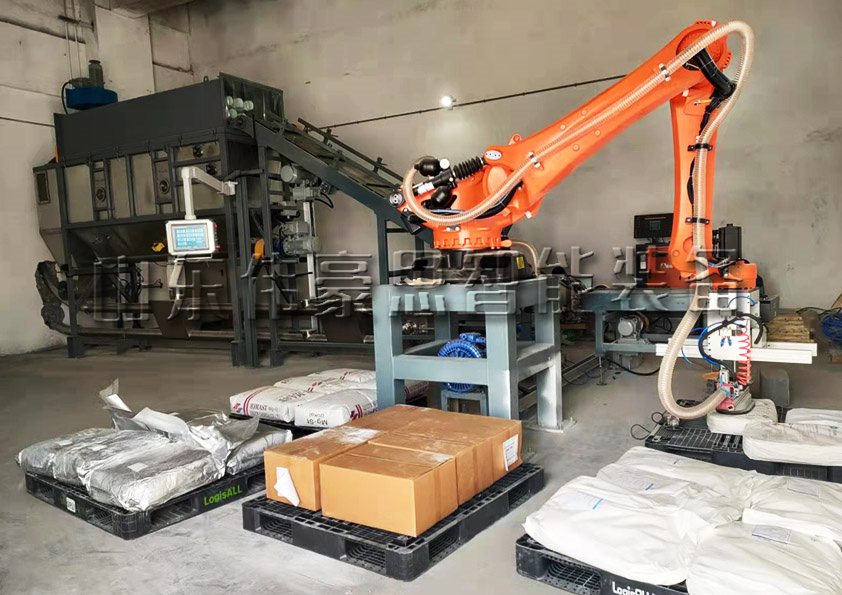 山東偉豪思脫硫劑機械手拆垛機的出現是隨著機械手高新技術的發展而發展起來的,拆垛機作為一個新的產品,一問世就受到廣大生產企業、工廠的歡迎,它的優點是替代人工搬運拆垛大大提高了效率,減輕了勞動人力,減少了人力資源,可以說它的出現實現了低成本,高回報的自動化設備.