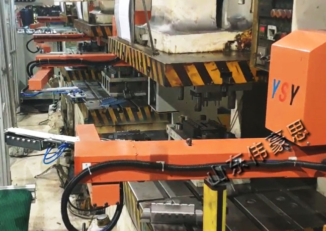 沖壓機械手與壓力機沖壓集成運用主要有兩種方法。一是單臺沖壓機械手沖壓上下料:通過沖壓機械手將板料從拆垛臺移送到定位臺,定位后再移送到壓力機模具中施行沖壓,沖壓結束后,通過沖壓機械手取料放入堆垛臺,完成單臺壓力機沖壓機械手自動上下料。二是沖壓機械手沖壓連線:通過多臺沖壓機械手在多臺壓力機之間樹立沖壓連線。根據加工工件成形工藝要求,需要在多臺壓力機協作加工,整條生產線由拆垛沖壓機械手,上料沖壓機械手、壓力機之間傳輸搬運沖壓機械手,尾線沖壓機械手組成。與直線坐標的機械手比較,選用工業沖壓機械手更有柔性,對模具沒有等高要求,簡略集成。創始運用自主壓力機控制系統和沖壓機械手控制系統無縫聯接,使沖壓機械手的動作和壓力機抵達和諧,運用現場總線,使整條生產線功率極大化,安全性更高。