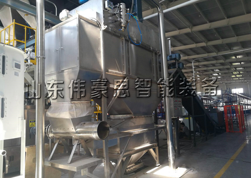 通(tong)過(guo)(guo)皮帶機自(zi)動(dong)給袋,在(zai)拆(chai)(chai)(chai)包箱體內割刀拆(chai)(chai)(chai)包,篩分(fen)機構(gou)自(zi)動(dong)袋料(liao)分(fen)離、卸(xie)料(liao)等步(bu)驟完(wan)成(cheng)聚(ju)乙(yi)(yi)烯顆(ke)粒的拆(chai)(chai)(chai)包卸(xie)料(liao)工作,通(tong)過(guo)(guo)管鏈式輸送(song)(song)機將聚(ju)乙(yi)(yi)烯顆(ke)粒輸送(song)(song)到指定位置(zhi)。整個過(guo)(guo)程僅需一人將聚(ju)乙(yi)(yi)烯顆(ke)粒袋放置(zhi)在(zai)皮帶機上,后序過(guo)(guo)程自(zi)動(dong)完(wan)成(cheng),大大節約了勞動(dong)力,提高了聚(ju)乙(yi)(yi)烯顆(ke)粒拆(chai)(chai)(chai)包卸(xie)料(liao)的生產(chan)效率。