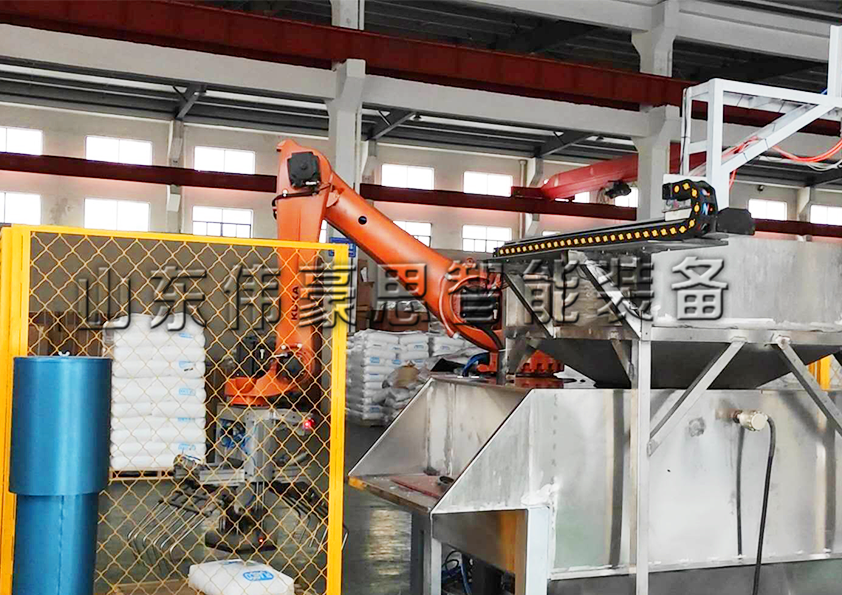 山東偉豪思(15314426573 殷)檸檬酸自動拆包機器人是針對10-50kg不(bu)同袋裝物料(liao)研(yan)發的(de)具有掃碼(ma)、計數、核(he)對(dui)、拆(chai)(chai)(chai)包(bao)功能的(de)自(zi)動(dong)(dong)(dong)化拆(chai)(chai)(chai)包(bao)設備(bei),也叫自(zi)動(dong)(dong)(dong)拆(chai)(chai)(chai)包(bao)機(ji)(ji)器人(ren),自(zi)動(dong)(dong)(dong)拆(chai)(chai)(chai)袋機(ji)(ji)械手(shou),全自(zi)動(dong)(dong)(dong)拆(chai)(chai)(chai)包(bao)投料(liao)站,機(ji)(ji)器人(ren)自(zi)動(dong)(dong)(dong)拆(chai)(chai)(chai)包(bao)機(ji)(ji)等,該設備(bei)清空(kong)率(lv)高、拆(chai)(chai)(chai)垛拆(chai)(chai)(chai)包(bao)速度快、可(ke)以(yi)連續(xu)作(zuo)業,不(bu)但幫(bang)助企業解決(jue)了(le)物料(liao)殘留造成(cheng)的(de)浪費問題(ti)也提(ti)高了(le)企業的(de)生(sheng)產效率(lv),促進了(le)企業自(zi)動(dong)(dong)(dong)化生(sheng)產的(de)進程。