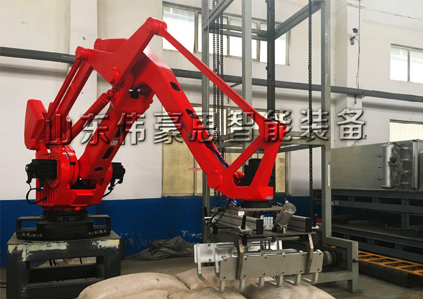 25kg面粉機器人碼垛機具有自動化水平高、碼碼速度快、成垛后垛形整齊等特點,針對碼垛機器人的工作要求,山東偉豪思提供碼垛機機器人系統,主要包含硬件和軟件的完整解決方案,提供運動控制器、伺服馬達、I/O模塊等硬(ying)件(jian)產(chan)品,以及(ji)碼(ma)垛機系統控(kong)制(zhi)軟件(jian)。客戶選配山東偉豪思碼(ma)垛機器人系統后進行配線安(an)裝,無需(xu)進行程序開發,即可開始使用(yong)。