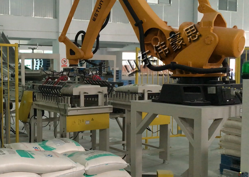 碼垛機是一種自動化程度高、集成度好的高(gao)速(su)碼垛設備。碼垛機將包裝袋按照要求編組后再通過機械手將物料一層層整齊碼放在升降平臺上。作為包裝線的后續設備,提高轉運能力和輸送效率,節省人工