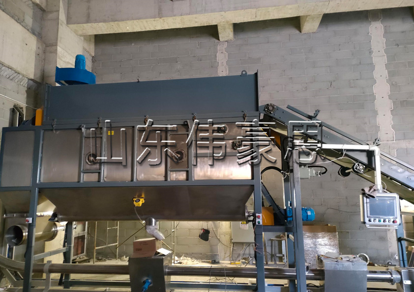 袋料由皮帶(dai)輸(shu)送機或其他(ta)方(fang)式輸(shu)送到一個45度(du)角的(de)滑(hua)道上,靠重力沿滑(hua)道滑(hua)動。 切割后的(de)殘留袋(dai)子和物(wu)(wu)(wu)料(liao)滑(hua)入滾(gun)(gun)筒(tong)(tong)篩進行篩選。 從滾(gun)(gun)筒(tong)(tong)篩落下的(de)物(wu)(wu)(wu)料(liao)由(you)(you)輸送(song)設(she)備輸出,破損的(de)包裝袋(dai)、雜(za)質和結塊物(wu)(wu)(wu)料(liao)由(you)(you)滾(gun)(gun)筒(tong)(tong)篩帶出體外,袋(dai)子由(you)(you)廢袋(dai)收(shou)集器收(shou)集。
