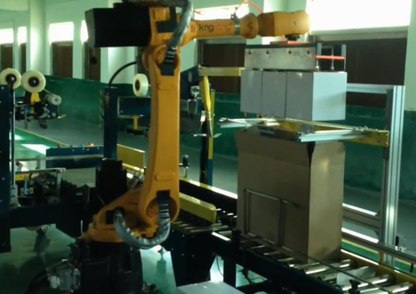 碼垛機器人適用于非金屬、化工、建材、環保等行業中物料的自動定量箱裝。全自動碼垛機器人可以集成任何生產線中,為生產提供智能機器人化,網絡化,可以實現啤酒,飲料和食品行業多種多樣作業的碼垛物流,碼垛機自動運行分為自動進箱、轉箱、分排、成堆、移堆、提堆、進托、下堆、出垛等步驟。