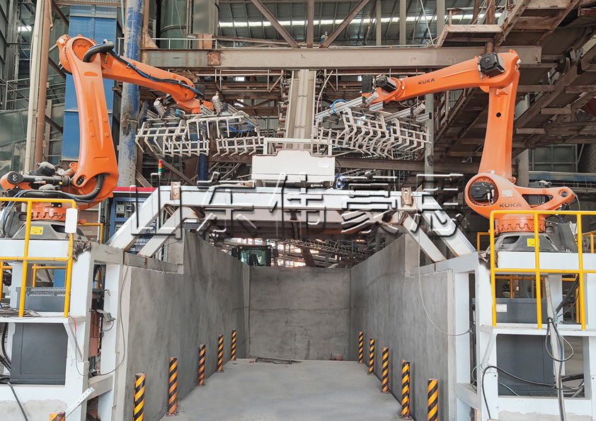 運輸(shu)車(che)一側的機器人從下方輸(shu)送線上抓取料袋裝車(che),2臺機(ji)器人分區(qu)作業(ye)且有(you)聯動防碰撞功能(neng),在工(gong)作中互不干涉。2臺機(ji)器人可同時裝車。