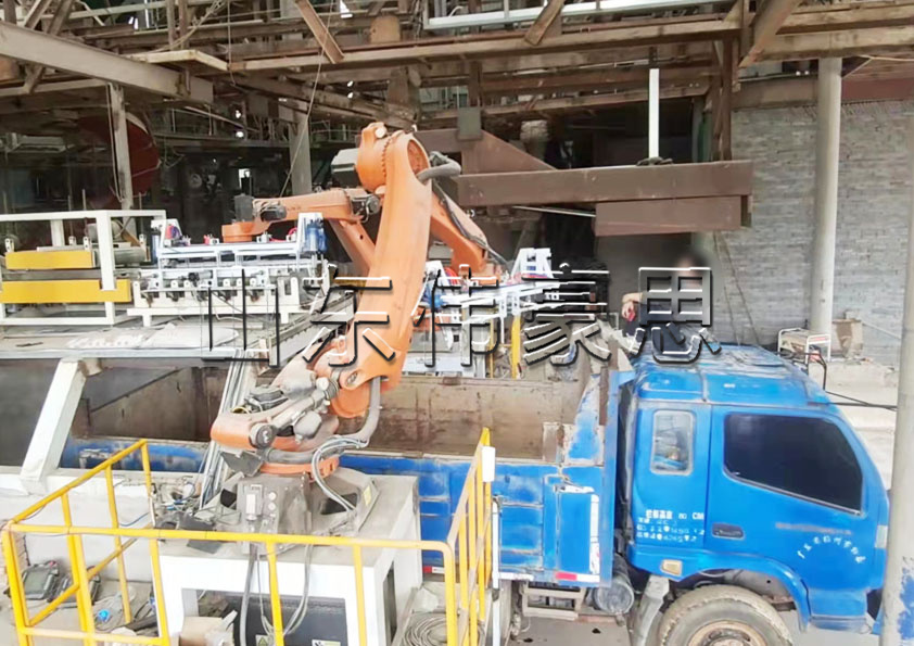 運(yun)輸車一(yi)側的機器人從下(xia)方輸送線上(shang)抓取(qu)料袋裝(zhuang)車,2臺機器(qi)人分區作業且有聯動(dong)防碰撞功能,在工(gong)作中互(hu)不干(gan)涉。2臺機器(qi)人可同時裝車。
