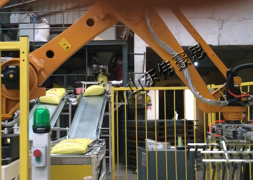 碳酸鈣粉全自動碼垛機械手原理(li);