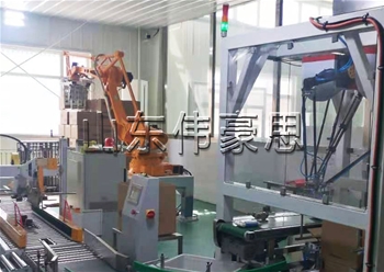 全自動開箱+裝箱+封箱+碼垛機生產線