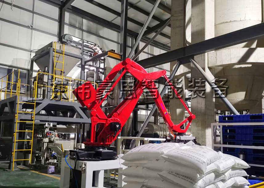 5、機器(qi)人按照設定程序對(dui)袋子進行抓取碼垛(duo);