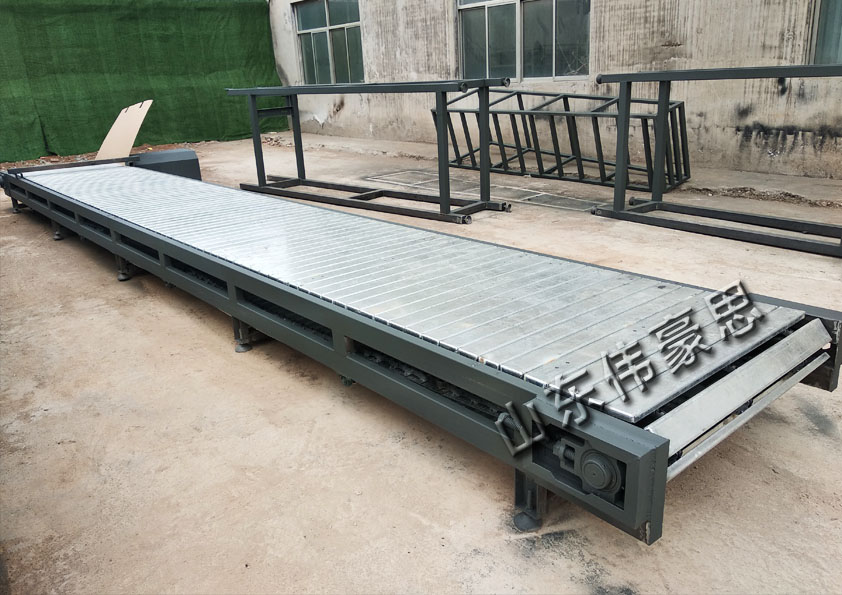 托盤輸送機由頭部(bu)驅動裝(zhuang)置(zhi)、尾輪(lun)裝(zhuang)置(zhi)、拉緊裝(zhuang)置(zhi)、鏈板及機架(jia)等五(wu)個部(bu)分組成(cheng)。