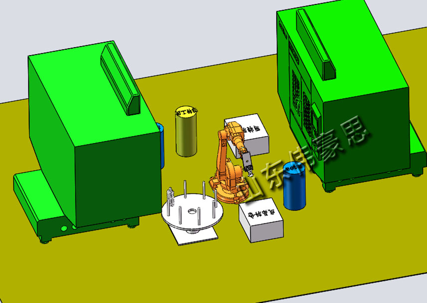 3、一臺(tai)機器(qi)人給二臺(tai)數控(kong)機床上(shang)下料,大(da)大(da)提高(gao)生(sheng)產效率,提高(gao)設備(bei)的稼動率。