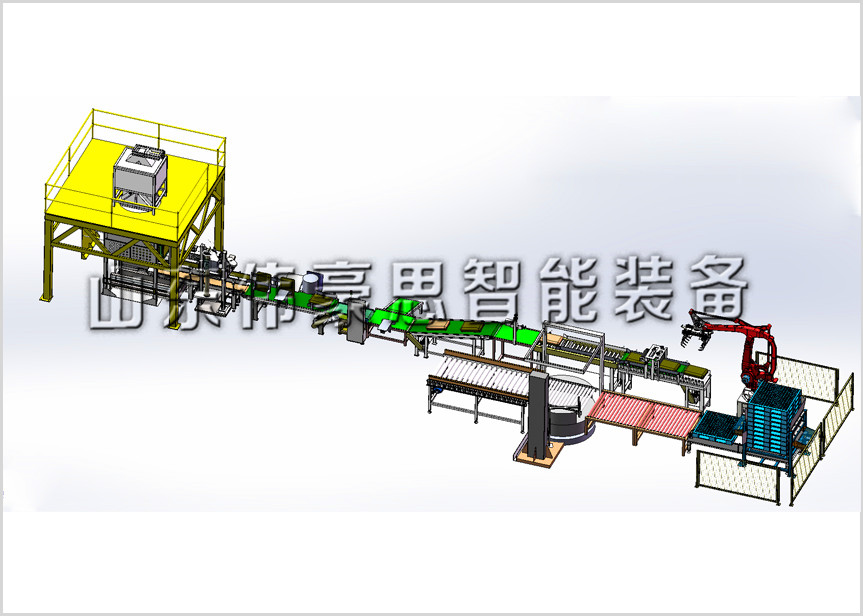 全自動包(bao)裝(zhuang)機與碼(ma)垛系(xi)統組成全自動包裝(zhuang)碼垛(duo)生產線: