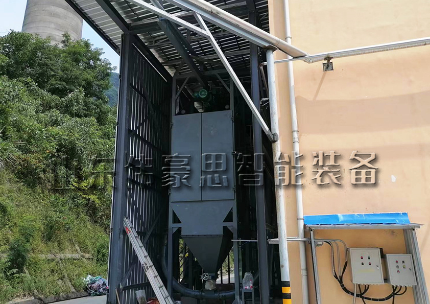 5、當噸包(bao)內物料完全卸出(chu)后,首先(xian)將(jiang)下料口(kou)扎緊,然后將(jiang)夾帶器壓板升起,去除噸袋。