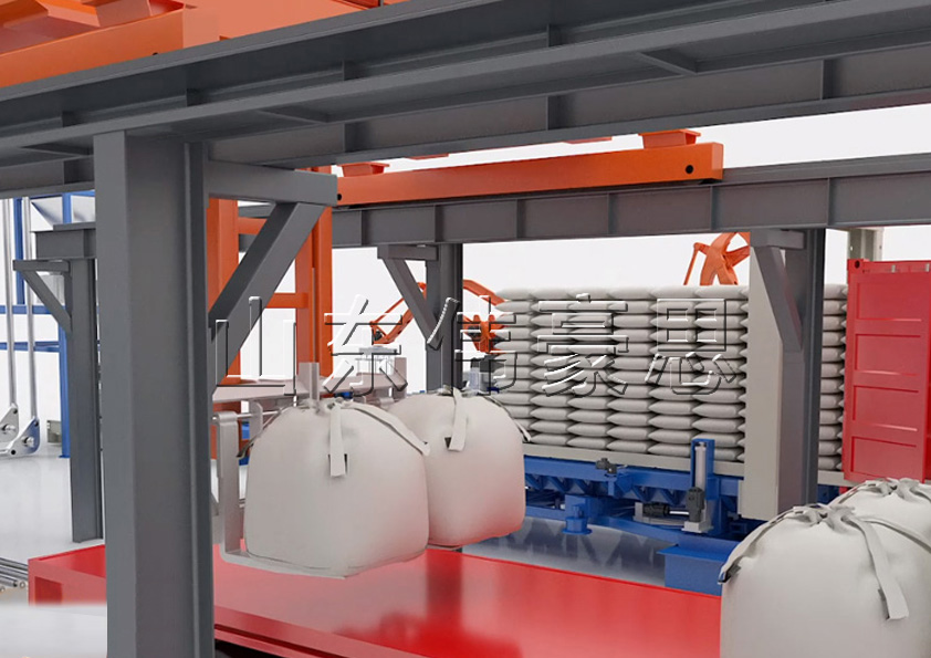 3) 自動裝(zhuang)車機(ji)將噸包放(fang)在車廂指定位置,自動裝(zhuang)車機(ji)的裝(zhuang)車叉具(ju)有(you)護包、整(zheng)形(xing)能力(li);